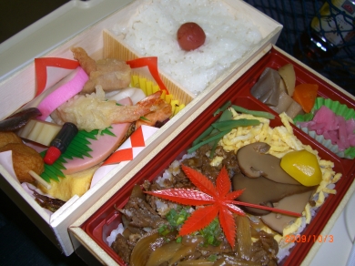 幕の内弁当とすき焼き松茸弁当を息子ちゃんとわけわけ