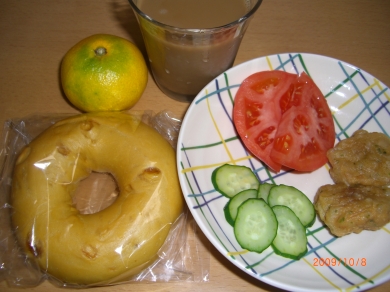 朝)7:30 キャラメルパンプキンベーグル キューリ トマト