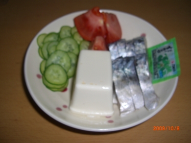 夜)18:30 シメサバ 豆腐 キューリ トマト みかん