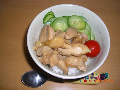 家族の鶏の照り焼き丼の鶏肉の味見少し