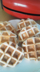子供のお友達が遊びに来ると言ってたのでワッフルを作りました。作りながら1個半