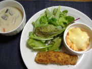 夜・サーモンフライ(しょうが) ベビーリーフのサラダ