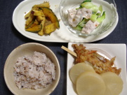 かぼちゃとさつまいものごまきんぴら 十六穀入りごはん