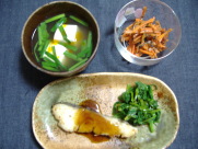 昼・あげと大根の薄煮 鮭とほうれん草の胡麻和え